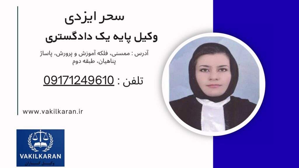 خانم سحر ایزدی، وکیل پایه یک دادگستری و عضو کانون وکلا